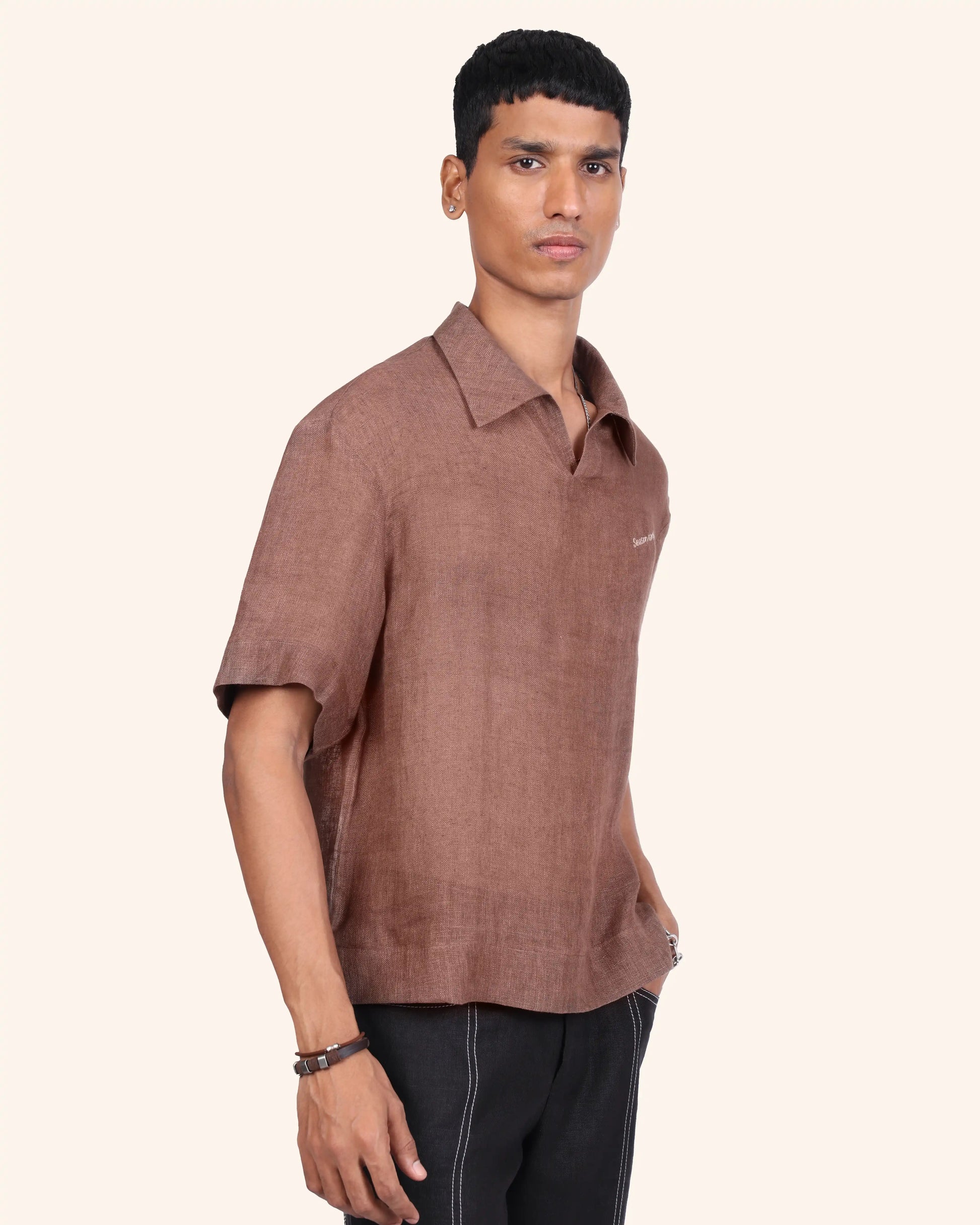 Soft brown linen meets clean tailoring in this shirt designed for versatility. With its grounded hue and structured ease, it brings subtle depth to every look. Made to order in 100% pure linen, it’s minimalism done right.